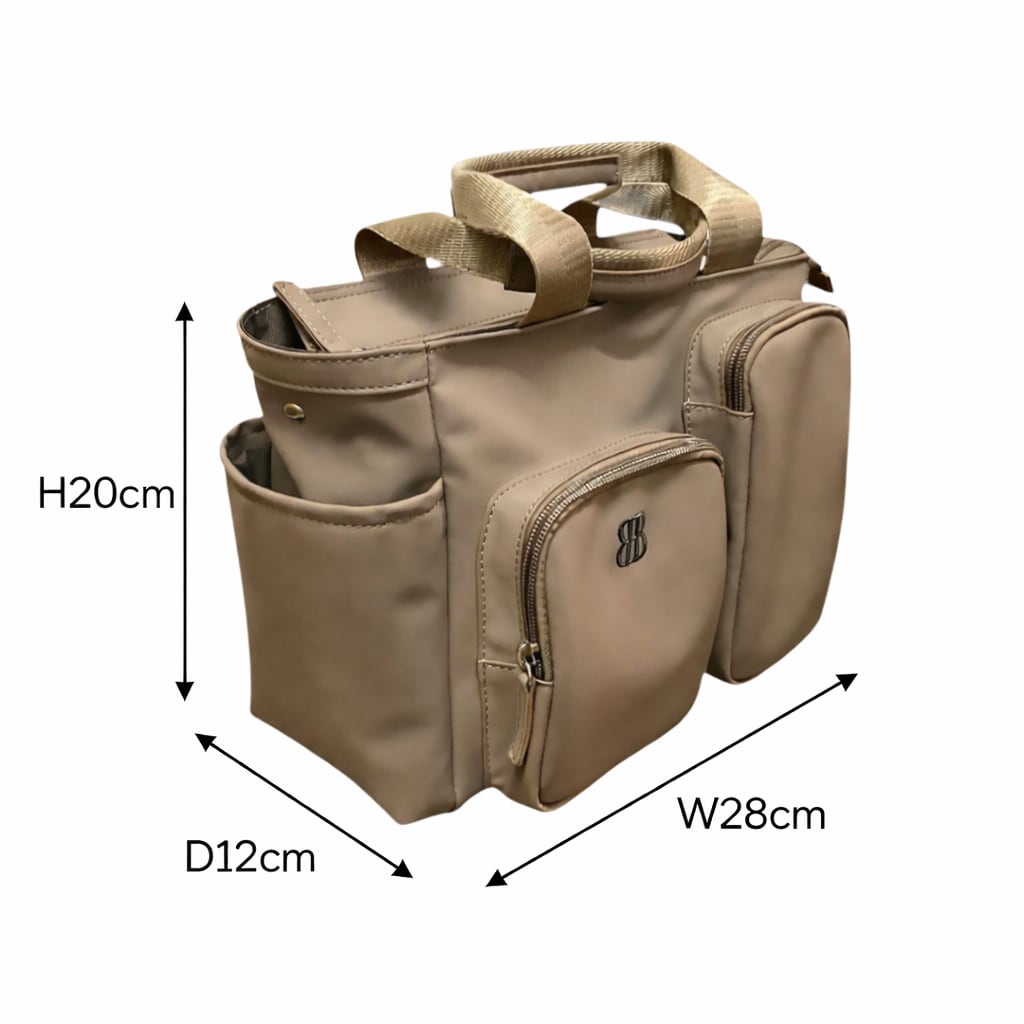軽い素材のフェイクレザーを使用しており、お手入れも簡単で扱いやすさ抜群。上品なベージュ色はさまざまなコーディネートに合わせやすく、ビジネスシーンからカジュアルなお出かけまで幅広く活躍します。