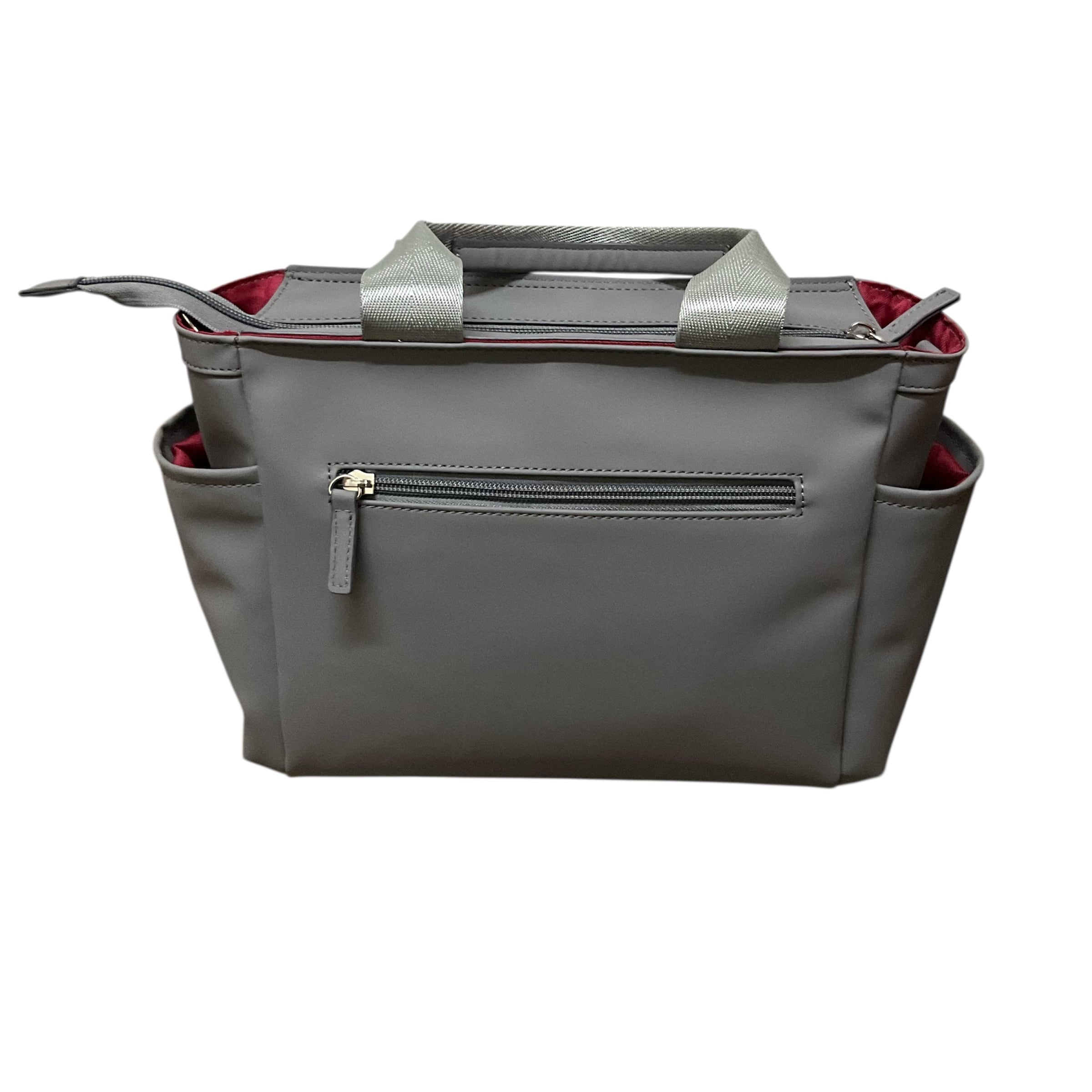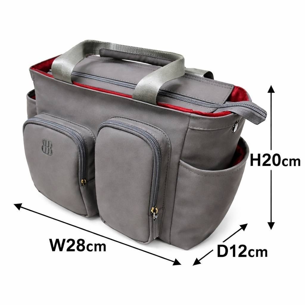 軽い素材のフェイクレザーを使用しており、お手入れも簡単で扱いやすさ抜群。上品なグレー色はさまざまなコーディネートに合わせやすく、ビジネスシーンからカジュアルなお出かけまで幅広く活躍します。